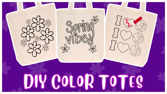 DIY Color Totes combine creativity with everyday use. Participants color in canvas tote designs using fabric markers, choosing from pre made templates or custom artwork featuring your organization.
